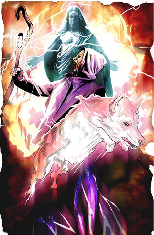 My first exposure to the work of Jake Minor was in 2017, and from afar. I learned that this artwork was part of a forthcoming supernatural western Jake was doing with his brothers entitled, No Rest for the Wicked (Source Point Press, 2019). I knew right away that I wanted to commission Jake to do something for The Shepherd.